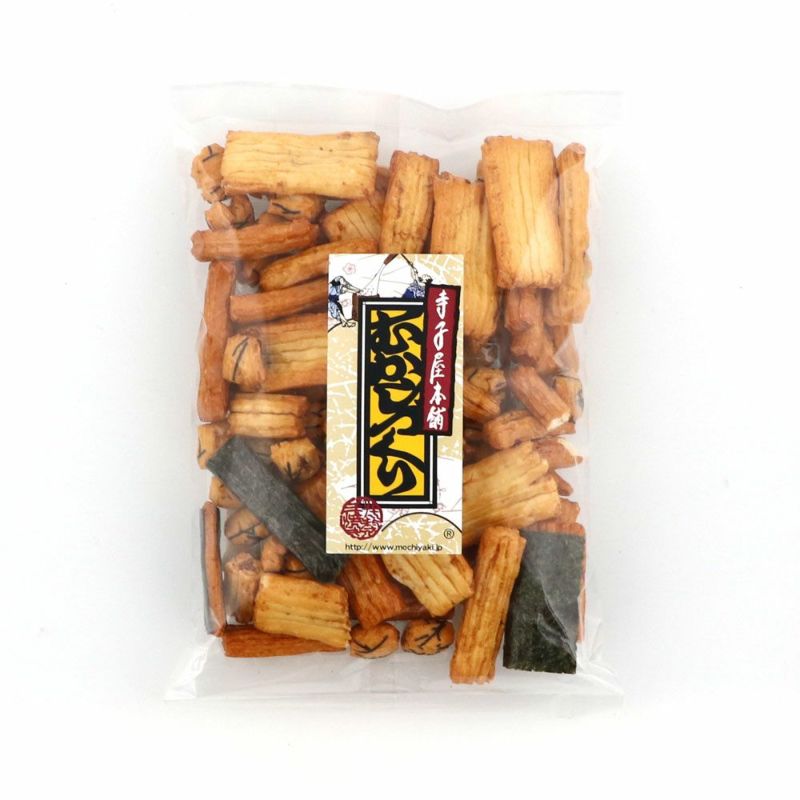 原材料 もち米(国産)、醤油、のり、砂糖、本みりん、かつおコンク、コンブエキス液、食塩、香辛料/カラメル色素、加工澱粉、調味料(アミノ酸等)、(一部に小麦・大豆・さばを含む)