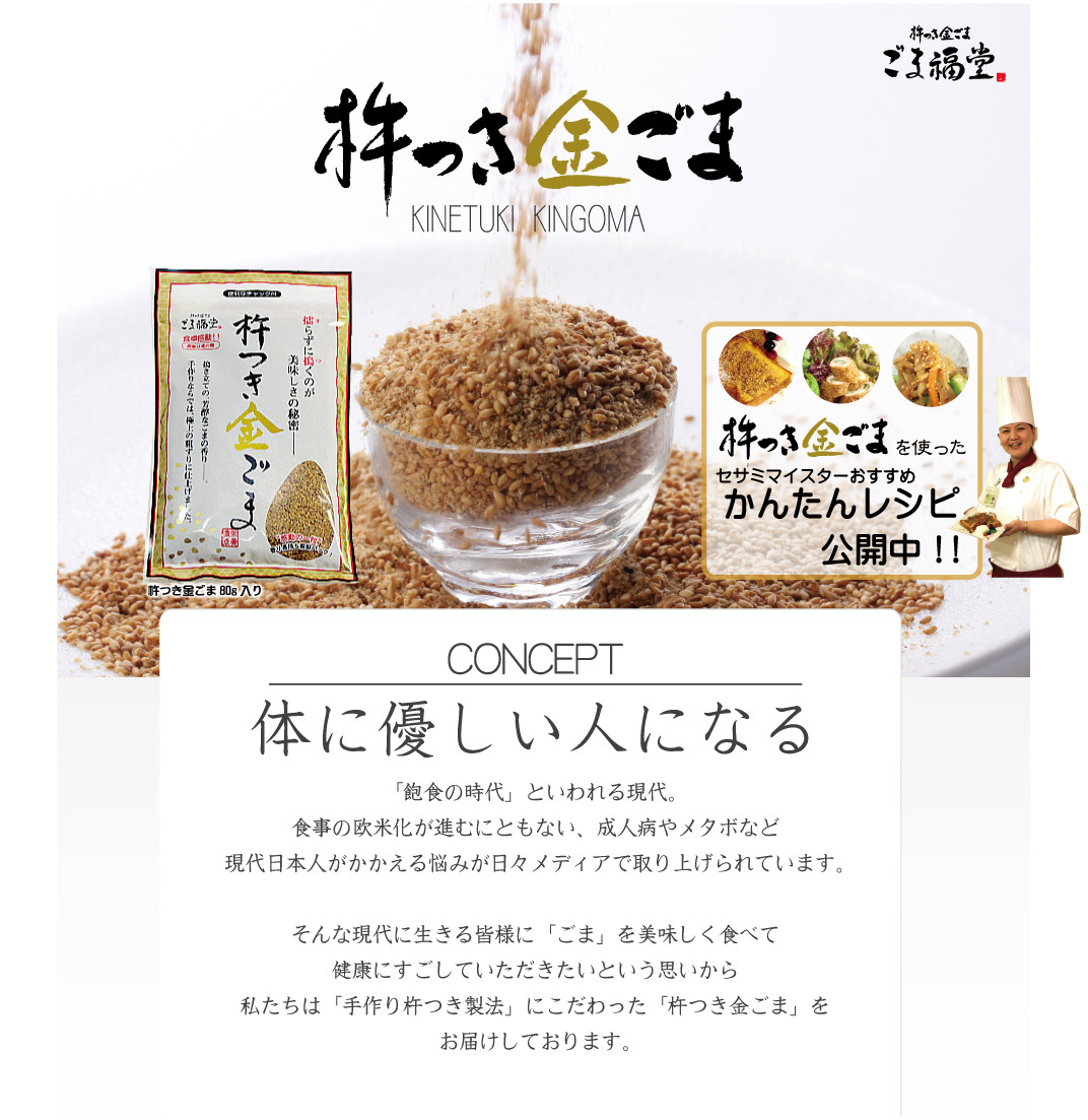 「ごま福堂」の「杵つき金ごま」はその名の通り、杵と臼を使用し、人力でごまを極力傷つけぬように搗くことで、サラッとした 仕上がり、香り高い風味が長持ちします。