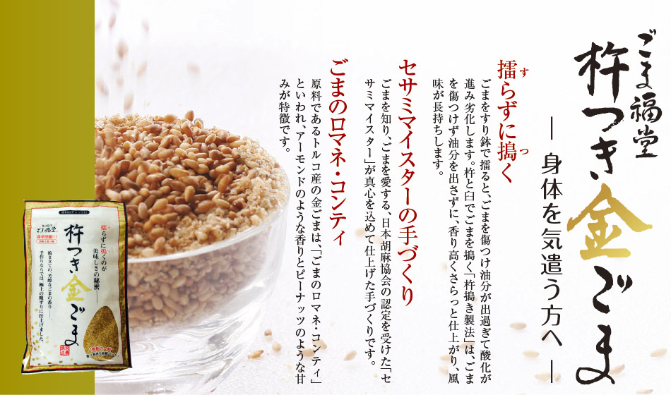 ごまを知り、ごまを愛する、日本胡麻協会の認定を受けた「セサミマイスター」が真心を込めて仕上げております。