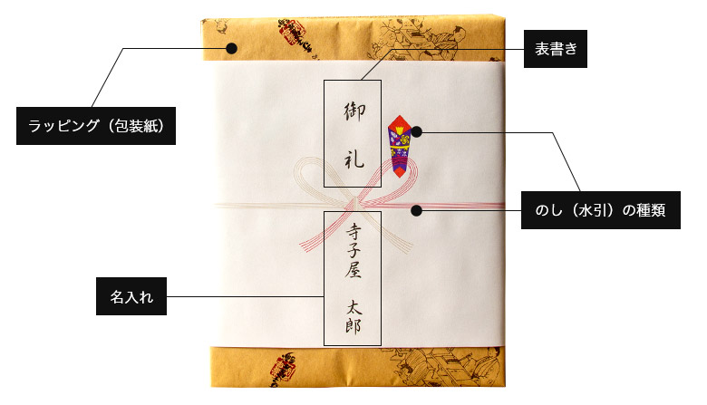 ※特にご指定がない場合、一般包装は“内のし(包装紙の中)”、仏事包装は“外のし(包装紙の外)”となります。