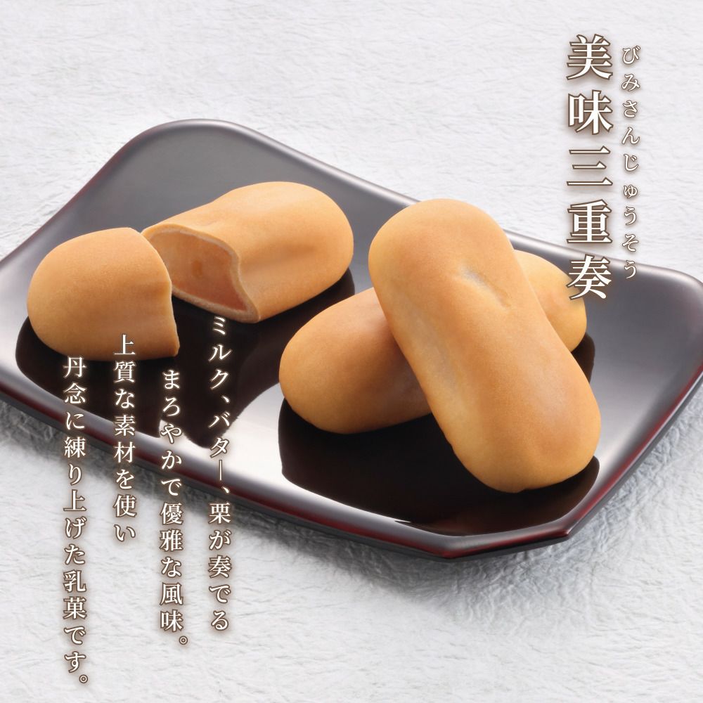 他の画像を見る 【期間限定セール中】冬季限定 美味三重奏 6個 通常販売価格 ¥ 1,200 を 定価 ¥ 900 税込 詳細を見る お気に入りに登録 販売期間 2025/11/04 10:00 〜 2026/01/31 23:59